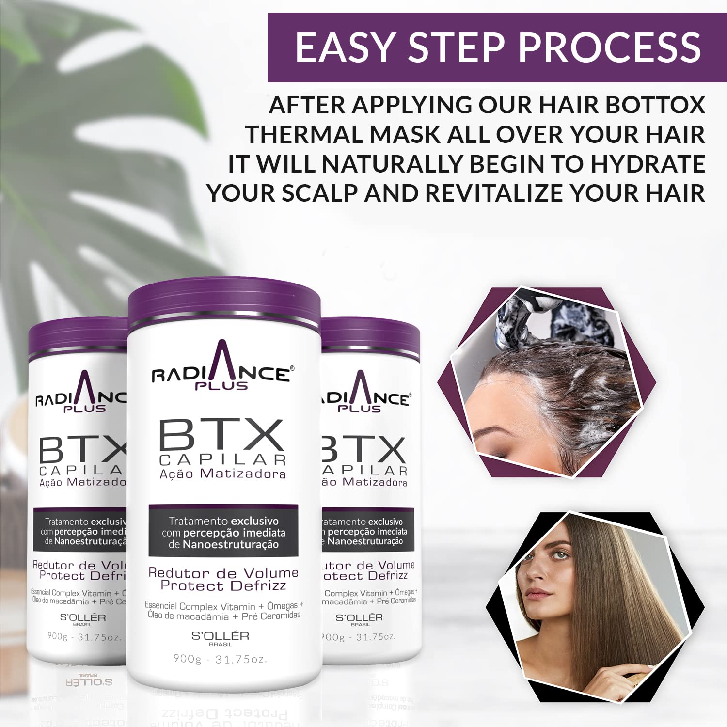 Once our hair botox thermal mask is applied throughout your hair, it naturally starts to hydrate your scalp and rejuvenate your hair, reducing issues like dandruff, breakage, and brittleness.