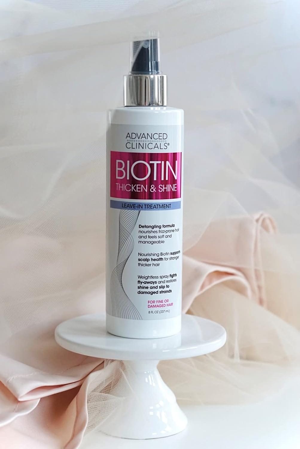 Try the Advanced Clinicals Biotin Hair Spray Leave-In Treatment—designed to fortify weak strands while revitalizing thinning, lackluster hair for a fuller, healthier look!